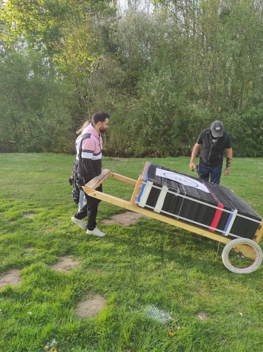 Afin d'emmener àaux bonnes distan,ces et avec peu d'efforts noc cibles en "lamtech", nous utilisons des chevalets modifiés.
